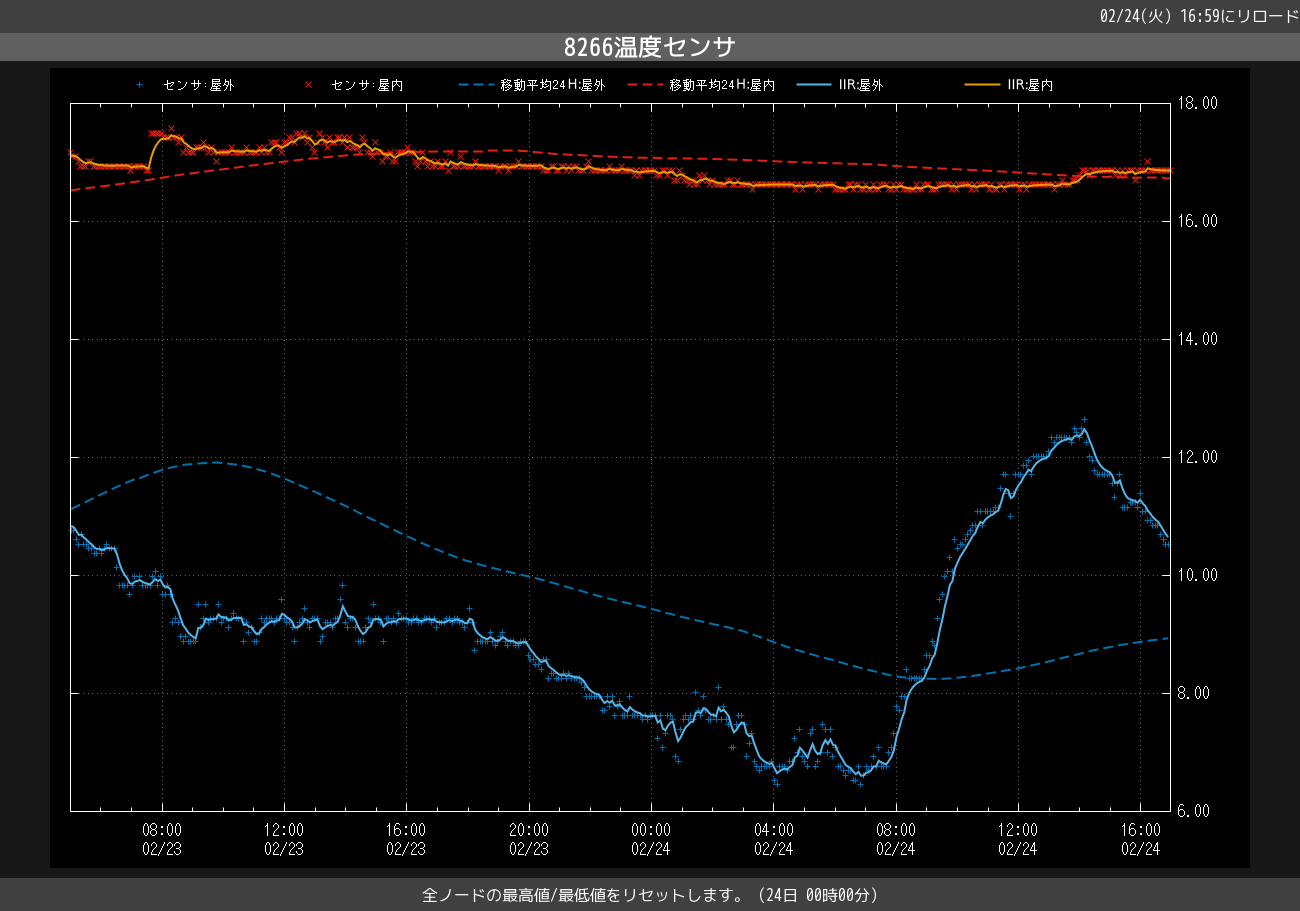 - 表示形式の基本 - 生データとトレンド(FIR or IIRフィルタによる処理値)の2つのグラフを描画