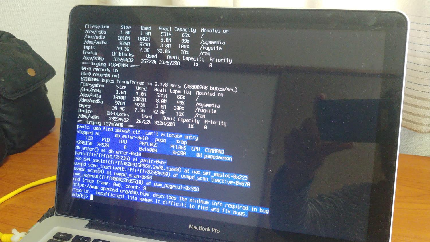 available memory: 239M Enter tmpfs size (0M is auto). You can add suffix K, M, or G. % is a percentage of memory size. and %% is a percentage of the total memory and swap. otherwise considered "megabytes" [default: 0M] -> set tmpfs size to 0MBWith the procedures described above, you can use FuguIta with TMPFS. Although note that TMPFS is not completely stable. TMPFS may cause kernel panic when it is heavily being paged out and in. For example, this problem can be reproduced by executing following test script.