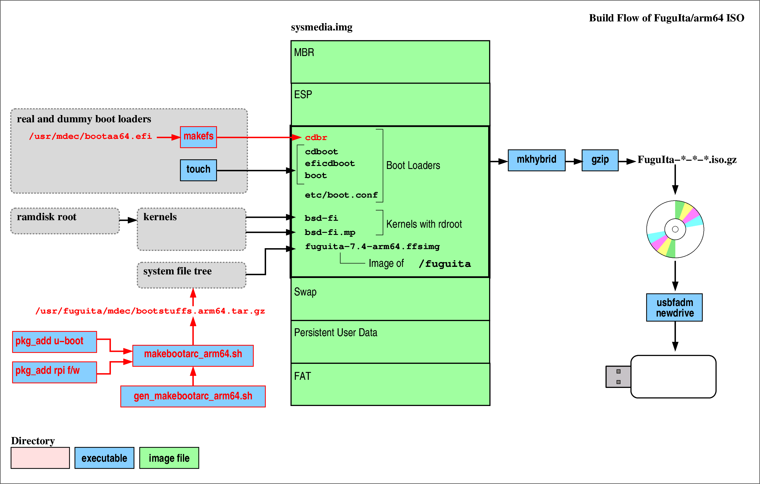 以上より、arm64のISOイメージを作成するためのビルドフローは以下のようになる(赤字部分が変更点)