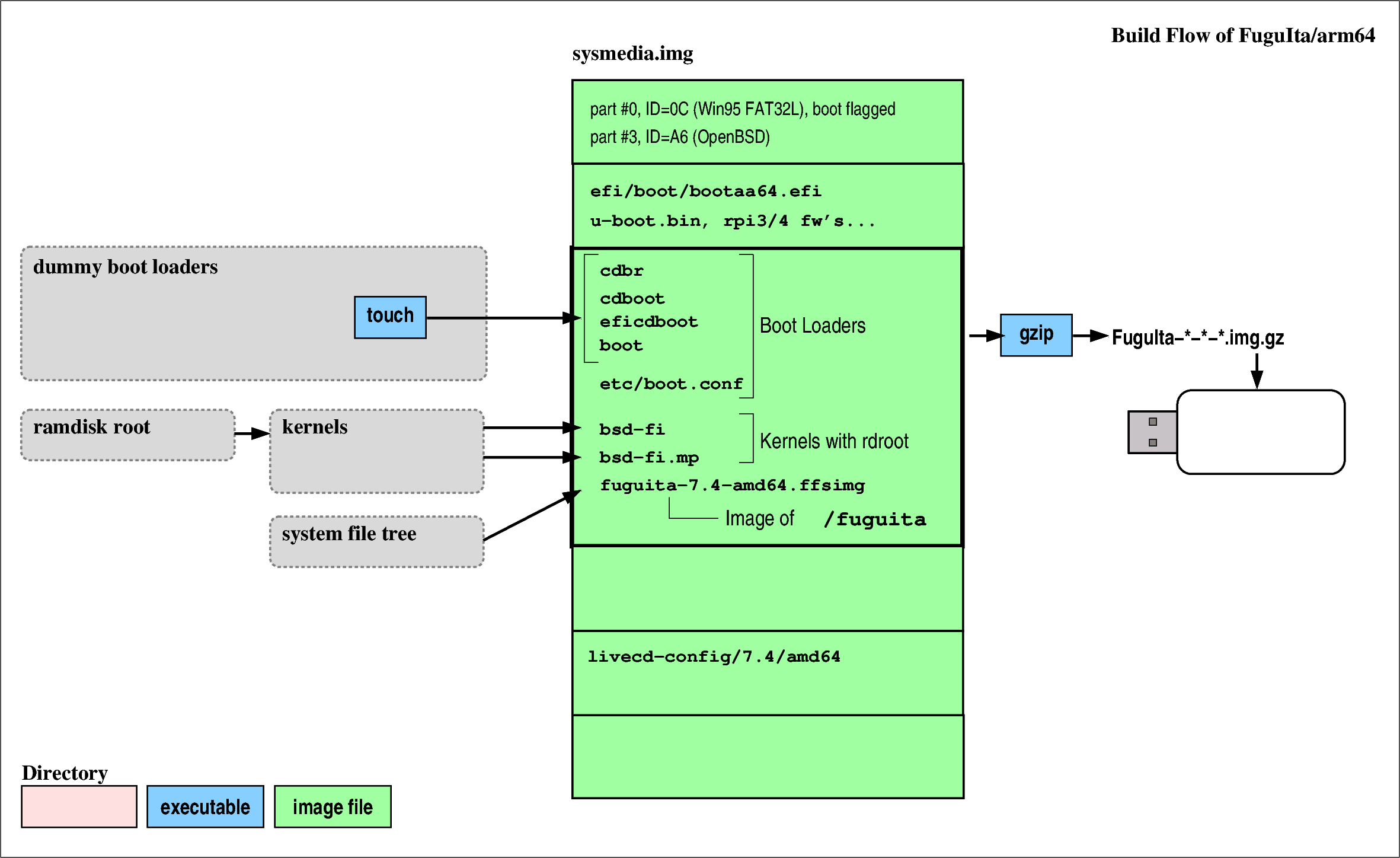 + ${.OBJDIR}/cd-dir以上より、arm64のISOイメージを作成するためのビルドフローは以下のようになる(赤字部分が変更点)
