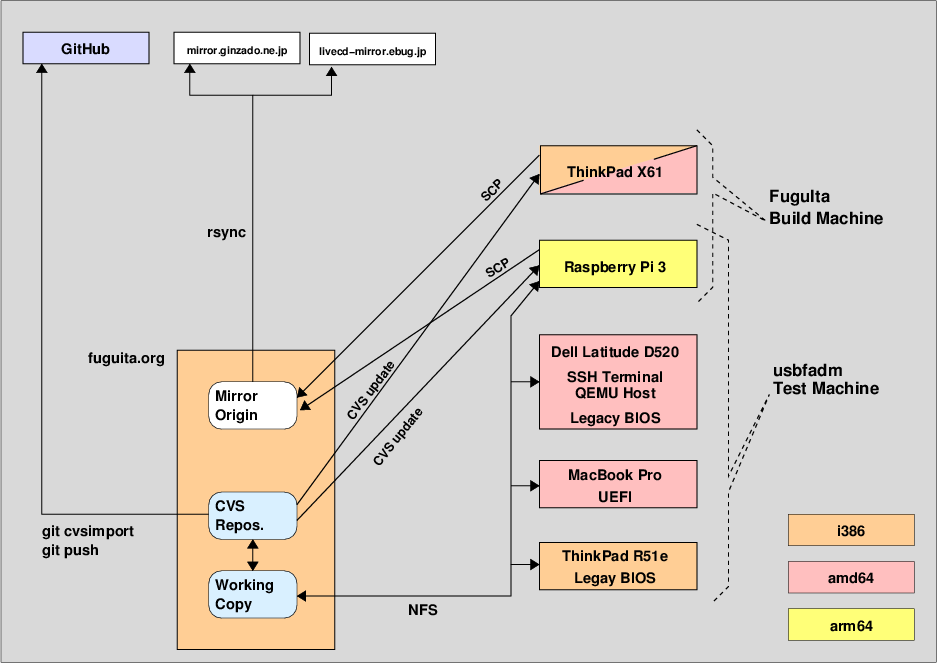 usbfadmが一通り動作するようになってからはプラットフォーム依存部分を開発・動作確認したり、河豚板のリリースに組込む必要があるため、実ハードウェアにて開発を行った。