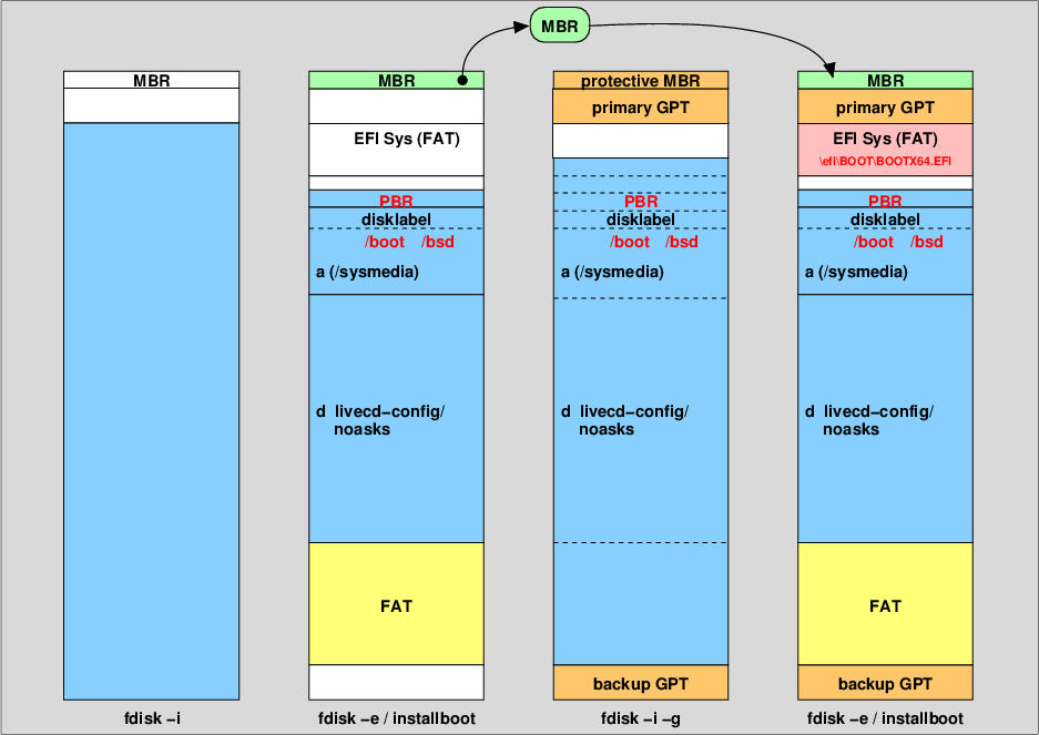 | MBR | i386, amd64 | amd64, arm64 | N/A | all |