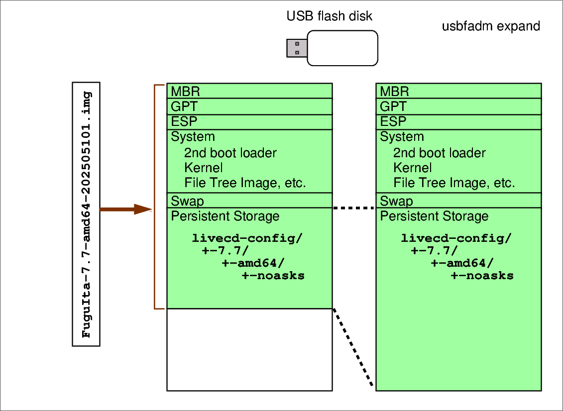 usbfadm (USB Flashdrive ADMinistration tool) は、河豚板LiveUSBでUSBメモリを管理するためのユティリティツールです。