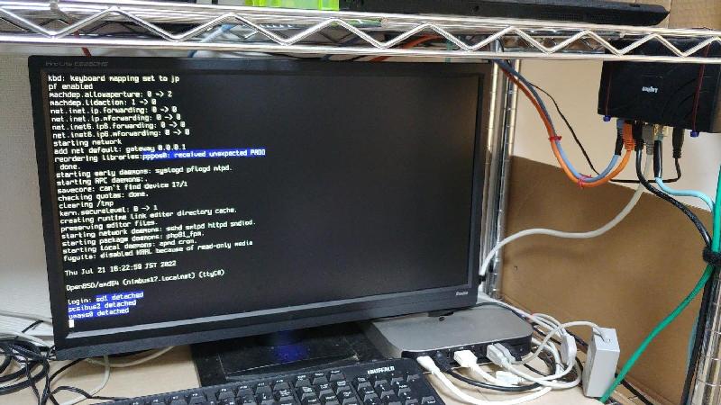 After the server failure, I started up the machine in the photo above (IBM Aptiva, 486DX4 100MHz, mem 24MB) and used it as a web server to inform people that fuguita.org was down. This machine was already configured for PPPoE.