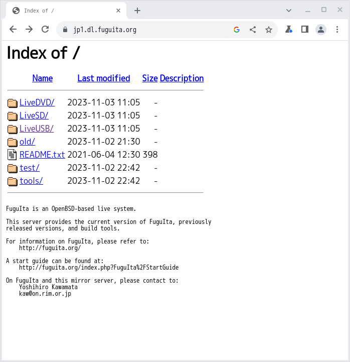 日本国内からは、jp1.dl.fuguita.org または jp2.dl.fuguita.org でのダウンロードをお勧めします。