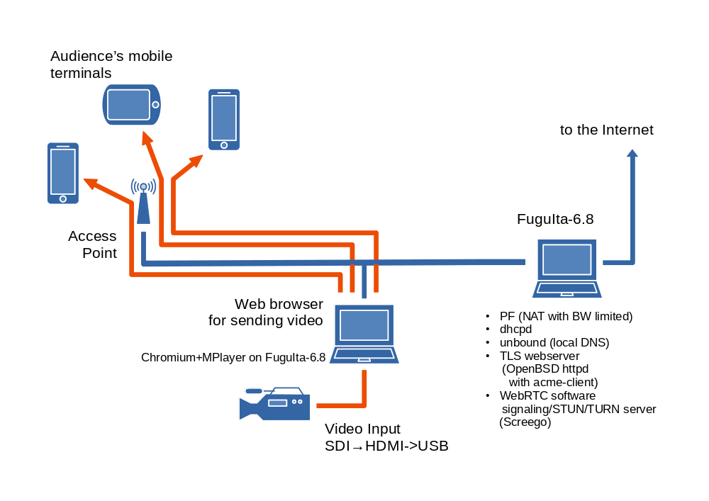 - 閉じたネットワーク内でTLS通信を行うため、WebRTCのサーバ以外にも、DNS, DHCP, NTPなどを用意する必要がある。
