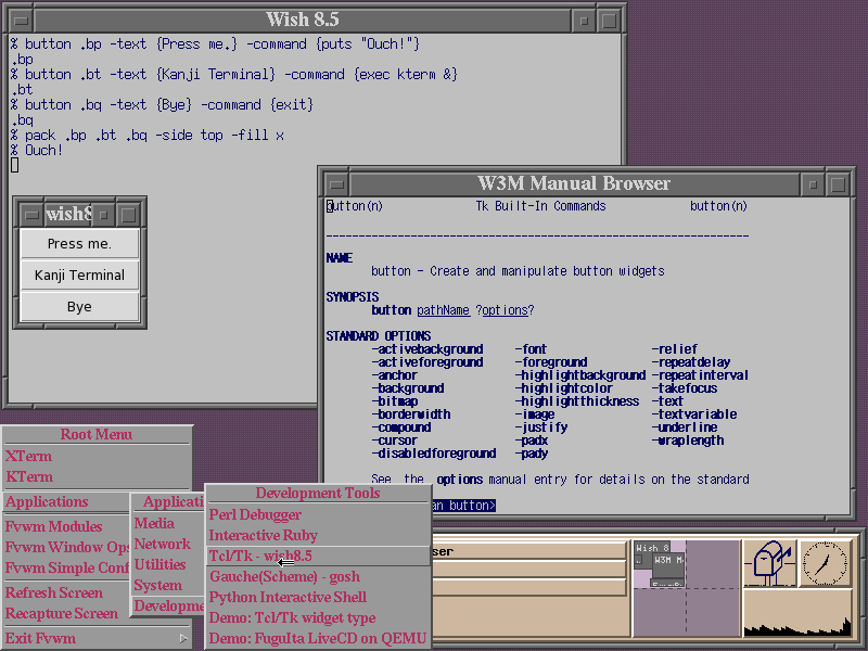 | cwm - Viewing OpenBSD journal | fvwm - Tcl/Tk console and Manual browser | |